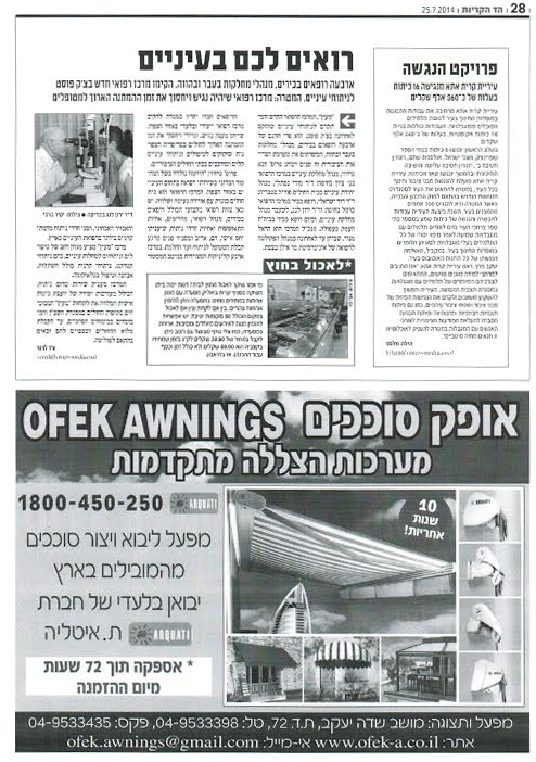 מרכז רפואי מעין - כתבה שפורסמה בהד קריות