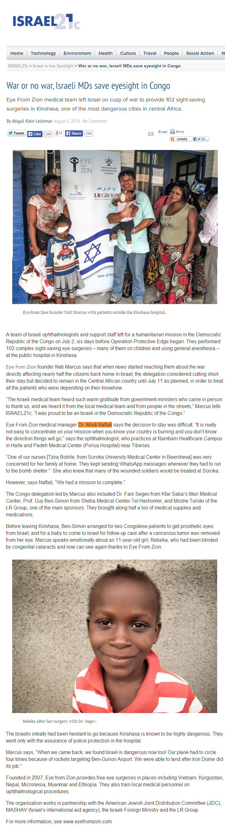 War or no war israeli Mds save eyeight in congo